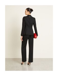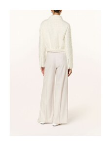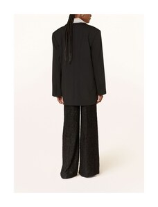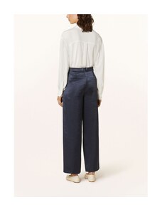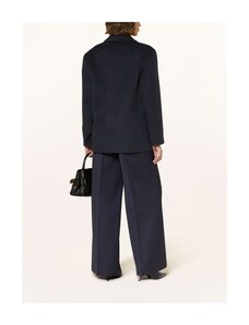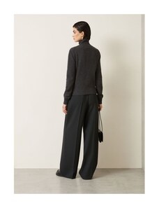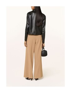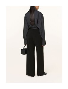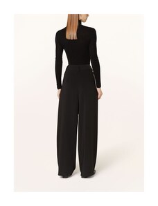 Wysoki stan. Proste nogawki. Długie nogawki. Szerokie nogawki. Szlufki. Z wełny. Jednolity kolor. Boczne kieszenie wpuszczane. Zapinane na guziki kieszenie z wypustką z tyłu. Zapięcie na guzik, haftkę i zamek błyskawiczny. Kanty. Solidny w dotyku materiał. Tkany materiał