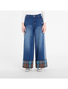 Adidas Originals Spodnie adidas Vintage Wide Leg Jeans With Checked Seam Indigo Denim/ Multicolor W27/L30