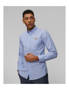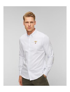 Koszula męska Aeronautica Militare to klasyczny model o sportowo-eleganckim charakterze, wykonany z lekkiej bawełny chambray. Zaprojektowana z dbałością o detale, łączy wygodę codziennego noszenia z wyrazistym stylem inspirowanym włoskim lotnictwem.Bawełna chambray – miękka, przewiewna i przyjemna dla skóry, zapewnia wysoki komfort noszeniaKołnierzyk zapinany na guziki – zachowuje kształt i podkreśla sportową elegancjęRegularny krój – zadba o odpowiednie ułożenie na sylwetce, bez kompromisów w kwestii wygodyKieszeń na piersi z haftowanym logo – nawiązuje do tradycji włoskich sił powietrznych i podkreśla autentyczność markiCiekawostka: Każdy element zdobienia w kolekcjach Aeronautica Militare jest inspirowany rzeczywistymi emblematami używanymi przez włoskich pilotów – to znak autentyczności i szacunku dla historii lotnictwa, z którego marka czerpie swoją tożsamość.Każdy wykorzystany emblemat jest autentyczny i odnosi się bezpośrednio do historii Włoskich Sił Powietrznych.