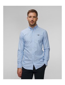 Niebieska koszula męska Aeronautica Militare to połączenie elegancji i komfortu. Wykonana została w całości z miękkiej i naturalnie oddychającej bawełny. Charakteryzuje się ponadczasowym designem z klasycznym kołnierzykiem i ozdobnym akcentem w postaci haftowanego na piersi logo marki. Regularny fason sprawi, że odpowiednio ułoży się na sylwetce, jednocześnie dbając o wygodę poruszania się. Koszula sprawdzi się doskonale jako bazowy element zarówno casualowej, jak i wyjściowej stylizacji. Każdy wykorzystany emblemat jest autentyczny i odnosi się bezpośrednio do historii Włoskich Sił Powietrznych.