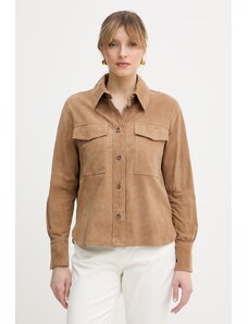 Beżowy kurtki koszulowe damskie