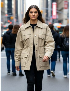 Beżowy kurtki koszulowe damskie