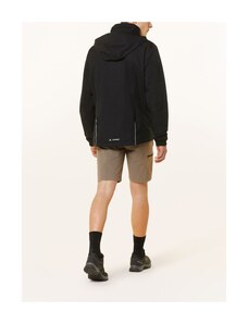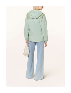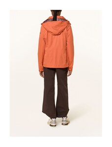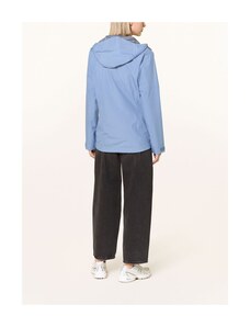 Z materiału funkcyjnego. Konstrukcja 2,5-warstwowa. Materiał oddychający, wiatro- i wodoszczelny. Listwa kryjąca nad rozcięciami wentylacyjnymi z tyłu. Słup wody: 10 000 mm. Właściwości oddychające: 10 000 g/m²/24 h. Uszczelnione szwy. Krój wg producenta: regular fit. Prosty krój. Częściowo elastyczny kaptur z tunelem z troczkiem i daszkiem. Elastyczne szlufki na karku. Wysoko zapinany kołnierz. Rękawy raglanowe. Zapięcie na częściowo podszyty zamek błyskawiczny. Zamek błyskawiczny z osłoną podbródka. Częściowo elastyczne ściągacze przy rękawach. Kieszeń piersiowa na kryty zamek błyskawiczny. Boczne kryte kieszenie wpuszczane. Przedłużony, zaokrąglony tył. Szerokość rąbka regulowana za pomocą tunelu z troczkiem. Bez podszewki. Odblaskowe detale. Detale z marką. Małe wymiary po złożeniu. Lekki materiał. Z dodatkiem materiałów recyklingowanych