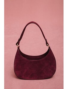 Estro: Bordowa torebka damska typu shoulder bag z włoskiego weluru naturalnego Premium