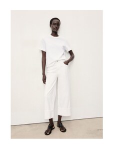 MANGO - Krótkie jeansy wideleg z wywiniętym dołem biały - 40 - Kobieta