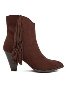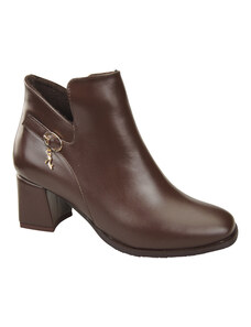 Botki Damskie Czekoladowe ElitaBut 226 Z Skóra Naturalna, Ocieplane, Nosek Kwadratowy, Obcas Klocek