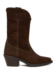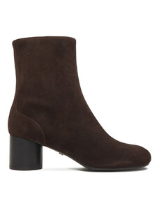 Botki Damskie Kawowe ze Skóry Naturalnej Welurowej na Stabilnym Słupku z Zamkiem 224 ElitaBut