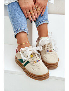 Damskie buty sportowe wykonane z eko zamszu i siateczki, które zapewniają lekkość oraz przewiewność. Osadzone na platformie, oferują dodatkową wysokość i komfort. Wewnątrz znajduje się piankowa wkładka pokryta materiałem, która gwarantuje wygodę i amortyzację na każdym kroku. Stylowe i funkcjonalne, te buty świetnie sprawdzą się w codziennych stylizacjach, łącząc nowoczesny wygląd z komfortem na co dzień. Przy wyborze rozmiaru prosimy kierować tabelą rozmiarów.
