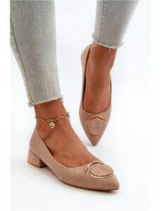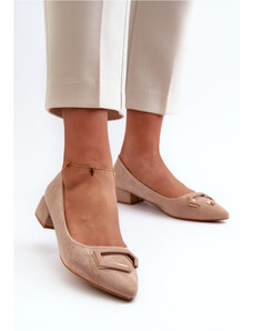 Czółenka damskie wykonane z eko zamszu to stylowa propozycja łącząca elegancję z wygodą. Model posiada szpiczaste noski, które podkreślają smukłą linię buta i kobiecy charakter. Niski obcas zapewnia komfort podczas chodzenia, dzięki czemu czółenka sprawdzą się w codziennym użytkowaniu. Przód zdobi regulowany pasek ze sprzączką, który pełni funkcję dekoracyjną i dodaje całości modnego akcentu. To uniwersalne obuwie idealne do stylizacji biurowych oraz eleganckich zestawów na różne okazje.