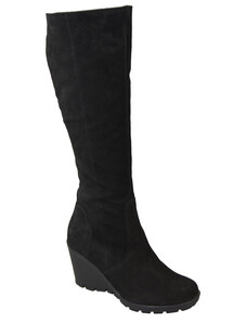 Obuwie Kozaki Damskie Koturna Czarne skóra naturalna welurowa 745 ElitaBut