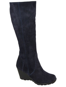 Obuwie Kozaki Damskie Koturna Granatowe skóra naturalna welurowa 745 ElitaBut