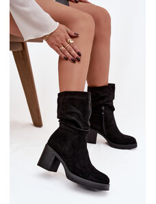 Obuwie Kozaki Damskie Czarne skóra naturalna Welurowa 153 ElitaBut