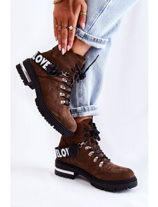 Butosklep Botki Workery Damskie Ocieplane Czekoladowe Ivonelle