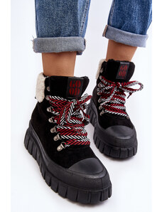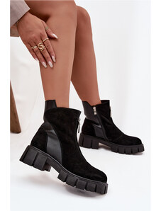Butosklep Botki Damskie Z Naturalnego Zamszu Ocieplane D&A JC52-874 Czarne