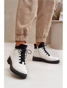 Butosklep Botki Damskie Ocieplane Z Niską Cholewką Eko Skórzane Białe
