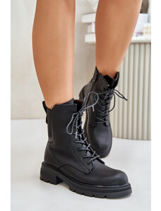 Butosklep Ocieplane Botki Workery Damskie Eko Skórzane Czarne Ellittia