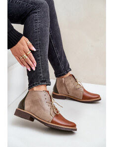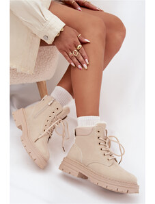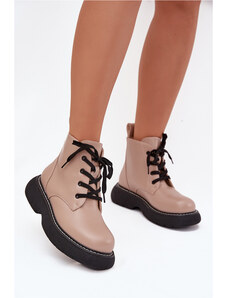 Butosklep Ocieplane Botki Damskie Na Platformie Sznurowane Ciemnobeżowe Harmine