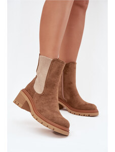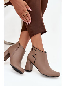 Butosklep Botki Sztyblety Damskie Ocieplane Na Klocku Ciemnobeżowe Zoralia