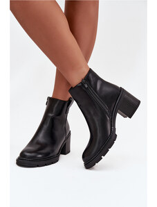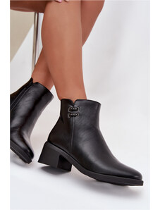 Butosklep Ocieplane Botki Damskie Z Eko Skóry Na Obcasie Czarne Alvena