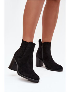 Butosklep Botki Damskie Z Naturalnego Zamszu Na Słupku Ocieplane D&A CR52-718 Czarne