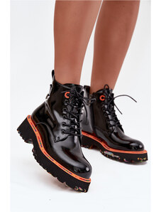 Butosklep Botki Damskie Z Lakierowanej Skóry Naturalnej Ocieplane Artiker 57C0061 Czarne