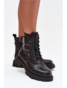 Butosklep Skórzane Botki Workery Ocieplane Na Zamek Czarne Elosie