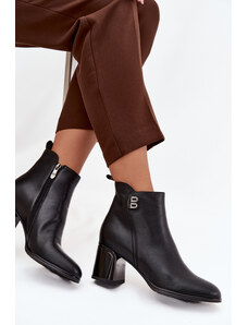 Butosklep Ocieplane Botki Damskie Z Naturalnej Skóry Na Słupku Czarne Jovelle