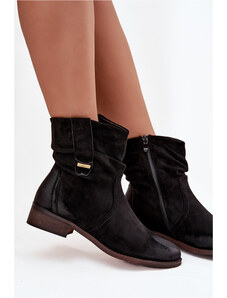 Butosklep Botki Z Eko Zamszu Na Płaskim Obcasie Czarne Innabelle