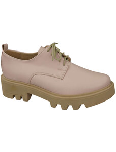 Obuwie Półbuty Damskie Sznurowane Róż Pudrowy Skóra Naturalne 180 ElitaBut
