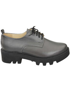Obuwie Półbuty Damskie Sznurowane skóra naturalna Popielate 758 ElitaBut