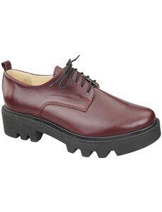 Obuwie Półbuty Damskie Sznurowane Bordowe Skóra Naturalne 180 ElitaBut