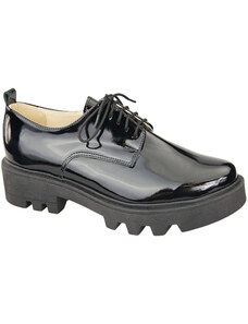Obuwie Półbuty Damskie Sznurowane Czarne Błyszczące Skóra Naturalne Lakierowana 180 ElitaBut
