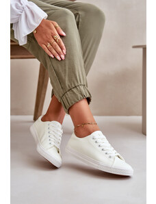 Butosklep Damskie Skórzane Wiązane Klasyczne Trampki Białe Misima