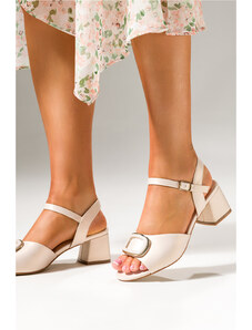 Beżowe sandały damskie na ozdobnym klocku złote dodatki skórzana wkładka Casu ER25X1-BE