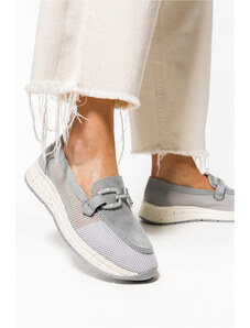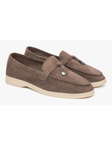 Estro: Jasnoszare mokasyny damskie z włoskiego weluru naturalnego Premium