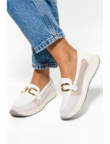 Beżowe mokasyny skórzane damskie na elastycznej platformie stalowa ozdoba PRODUKT POLSKI Casu 89832