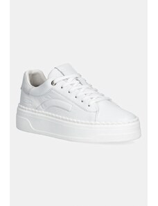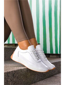Białe sneakersy skórzane damskie Sergio Leone na platformie sznurowane SP013-CA