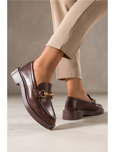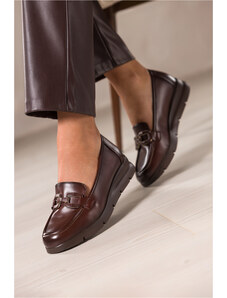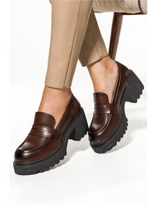 Brązowe mokasyny damskie na platformie z brązową sprzączką Carla CB334-7