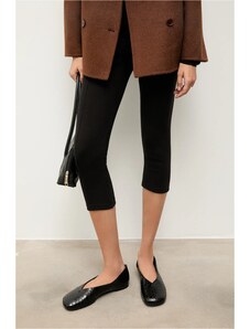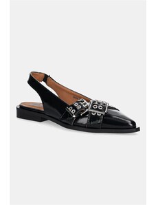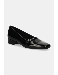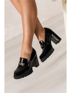 Czarne mokasyny damskie lakierowane na słupku złota ozdoba Carla T2338-6