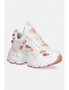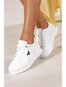 Białe sneakersy skórzane damskie creepersy na platformie złota ozdoba na cholewce sznurowane złote dodatki Carla 2311