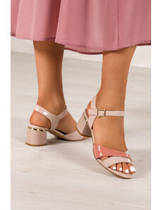Różowe sandały damskie lakierowane Sergio Leone na ozdobnym klocku skórzana wkładka SK886-CA