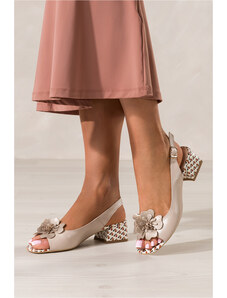 Jasnobeżowe czółenka skórzane damskie z odkrytą piętą perłowe wstawki PRODUKT POLSKI Casu 6889-Z94-853