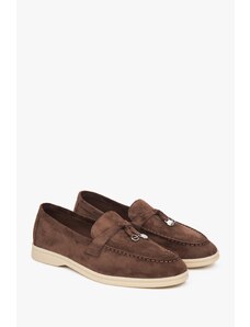 Estro: Brązowe mokasyny damskie typu Penny z weluru naturalnego