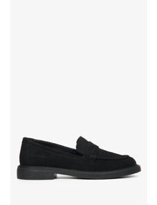 Estro: Czarne mokasyny damskie typu Penny z włoskiego weluru naturalnego Premium