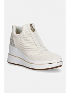 Beżowe sneakersy skórzane damskie ażurowe Sergio Leone na cieniowanej platformie elastyczne sznurówki HK-997