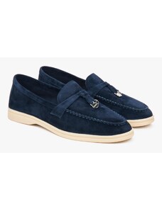 Estro: Niebieskie mokasyny damskie z zamszu naturalnego