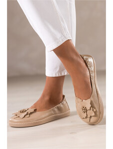 Beżowe baleriny damskie Sergio Leone na niskim obcasie z ozdobą skórzana wkładka BL203-CA
