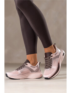 Jasnoróżowe sneakersy damskie buty sportowe na fitness z perforacją żłobiona platforma czekoladowe wstawki sznurowane Casu TZ1169-7