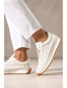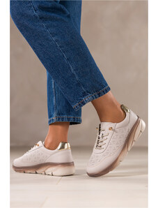 Jasnobeżowe półbuty skórzane damskie sneakersy ażurowe Sergio Leone na żłobionej podeszwie sznurowane HK-998