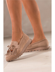 Estro: Jasnobrązowe mokasyny damskie z weluru naturalnego